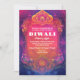 The background itself transitions from a rich blend of purples and blues at the edges to bright, warm shades of pink and orange in the centre. This gradient effect symbolises the essence of Diwali—light dispelling darkness, and the triumph of good over evil. The harmonious blend of colours evokes a sense of celebration and joy, perfectly capturing the festive atmosphere of the occasion.