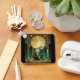 A kneeling android communes with light and nature beneath a radiant halo, blending technology, spirituality, and transcendence in a visionary tableau.