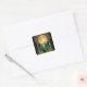 A kneeling android communes with light and nature beneath a radiant halo, blending technology, spirituality, and transcendence in a visionary tableau.
