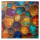 A captivating, abstract artwork resembling colourful interconnected cells or stained glass with golden, textured borders.