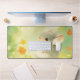 Infuse your office with the radiant charm of a sun-drenched meadow with this captivating chinchilla desk mat. This delightful digital painting features an adorable, fluffy gray chinchilla with soft fur and a wonderfully sweet, curious expression, sitting upright. The creature is nestled in a lush foreground of bright lime green grass and a vibrant array of wildflowers, dominated by cheerful sunny yellow, vibrant orange, and crisp white blooms. Two pale green butterflies add a touch of whimsy to the scene. The background is a breathtaking burst of luminous golden sunlight filtering through stylized foliage, creating an ethereal, light-filled atmosphere. This chinchilla desk mat is an ideal accessory for animal lovers, those who appreciate whimsical art, and anyone seeking a joyful, warm, and artistic addition to their computer setup.