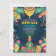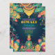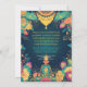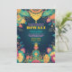 The front of the invitation features a rich dark background that beautifully contrasts with vibrant yellows and turquoise, creating a striking and festive atmosphere. At the bottom, a single ornately detailed Diya lamp shines brightly, serving as the focal point of the design. The vibrant yellows and turquoise are complemented by delicate pink elements, adding a touch of elegance and playfulness. Hindu ornamental patterns weave through the design, enhancing the traditional charm and adding depth. The event details are displayed in a sophisticated script that harmonises with the rich colours. The back of the card continues the dark theme, providing space for customisable text and Diwali wishes, framed by the same vibrant hues and intricate patterns. This design offers a perfect blend of tradition and vibrant celebration