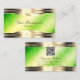 Luminous Green Marble Gold Borders with QR Code Business Card