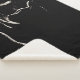 The luminous kitten extends its paws to the falling feathers. This is a perfect opportunity for him to play. The black background and white outline of the cat looks beautiful on the blanket.