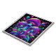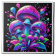 A mesmerising trio of glowing mushrooms stands at the heart of this vivid composition, their neon hues radiating an otherworldly glow. Their caps, textured with intricate swirling patterns, shimmer in shades of pink, blue, purple, and green, while their slender stems display the same mesmerising gradient. Surrounding the fungi, stylised leaves and twisting branches in vibrant pinks, purples, and greens create an enchanting, dreamlike environment. Splashes of luminous colour, resembling liquid light, float around the scene, enhancing its psychedelic, surreal quality. The background is a deep black, amplifying the intense contrast of the glowing elements. The mushrooms appear to emit their own inner radiance, casting a soft, otherworldly light that highlights their intricate details. Created in a bold digital painting style, this composition masterfully blends fantasy and vivid colour to create a captivating, dreamlike visual experience. Balancing bold colours and intricate textures, the artwork draws the viewer’s eye to the luminous fungi at its centre, making for an unforgettable, immersive design.