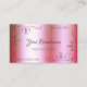 Make a lasting impression with this elegant and luxurious business card design featuring pretty shimmery ornate corner borders with cute hearts on a luminous pink and green colour gradient background.