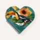 The picture shows a magnificent tukan with a bright orange beak that is proud to be sitting on a branch. Surrounded by lush green leaves and a bright sunflower, it radiates a peaceful, exotic warmth. The vibrant colors and the patchwork-like design give a sense of naturalness and serenity.