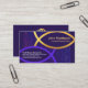 Overleaf, in a dark purple cover, the gold ichthus fish logo that you can use is at the top. This is followed by your prestigious name, contact details and a slogan option to publicise your services.