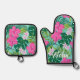Luna Hibiscus Garden Hawaiian - Pink and Turq Oven Mitt & Pot Holder Set