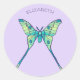 Luna moth butterfly insect green purple name classic round sticker