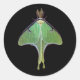 This sticker features the incredible luna moth, a lime-green, Nearctic Saturniid moth in the subfamily Saturniinae. With a wingspan of up to four and a half inches,  this lovely creature ranks as one of the largest moths in North America.  This adult moth has just emerged from the cocoon and is waiting on the bark of a tree trunk to dry and harden.  The adults do not eat or have mouths.  They live for only one week and emerge as adults only to mate.  With lime green colour and distinctive eyespots this is a very mysterious, magical looking being.