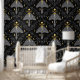 Luna moth, moon phases and ivy damask pattern wallpaper