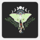 Luna Moth Moon Phases Black Square Sticker