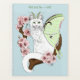 Bring a touch of magic to your day with this enchanting mystical luna moth crescent moon cat design. A majestic white cat with luminous green eyes, delicate luna moth wings, and a crescent moon marking on its forehead with moth antenna, this radiates fantasy and whimsy. Surrounded by soft pink cherry blossoms and perched gracefully on a branch. The mystical creature embodies elegance, mystery, and nature’s beauty. Perfect for lovers of cats, fantasy art, and magical aesthetics