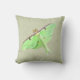 Parchment coloured throw pillow with a soft green Luna moth illustration.
