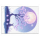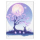 A tranquil midnight wonder with a white rabbit gazing at a glowing full moon in a serene night scene.