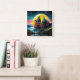 Large Colourful Moon Sets Down in the forest as a girl watches across a valley
