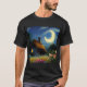 I give wanted to give this a 4 instead of a 5 because these Basic DARK T0shirts run unexpectedly SLIM or Narrow. Which is great if you do not have a potbelly, but I have a paunch. It isn't the shirt's fault that I've got a beer belly. The design and shirt itself is a quality cotton shirt. The color is more of a deep purple, but still a very pretty color. The Basic DARK T-shirts run a bit SLIMMER than the Basic Ts. The neck is a fraction narrower (or seems to be narrower) also. I'm a paunchy middle-aged woman and my neck is 12 inches (31cm) thick and the neckline fell about the same as in the photo of the man, and I had the desire to tug it a bit. So if you're a thick necked man or like loose shirts, be aware these are slimmer shirts. Once I get rid of my lockdown paunch it'll look great. The shirt washed well in cold water with no apparent bleeding. We don't have a dryer, so it hung dry. Did not shrink. Love the colors and the design. The design looks smaller on my shirt than it does on the model on-line. But still, it looks good on the shirt. The printing looks as it does on the model, just the size seems fractionally smaller. Washed garment in cold water, hung dry and design appeared unaffected.