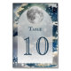Each table number is displayed in graceful elegant script and balanced with clean modern typography for easy readability and timeless style. A stunning blend of function and atmosphere, these cards help guests find their seats while adding a celestial glow to every table.