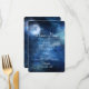 Lunar Sky Full Moon Celestial Galaxy Watercolor Design, with Night Shining Stars, and Glowing Moon Design on a luxurious Navy Blue, Pale Blue, and hints of purple watercolor texture. With Modern Typography Script Fonts. A trendy Magical design - Personalised Wedding Dinner Reception Table Decor Menus!