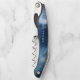 Lunar Sky Full Moon Celestial Galaxy Watercolor Design, with Night Shining Stars, and Glowing Moon Design on a luxurious Navy Blue, Pale Blue, and hints of purple watercolor texture. With Modern Typography Fonts. A trendy Magical design - Personalised Wedding Monogram Newlywed Keepsake Corkscrew!