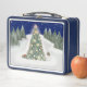 This charming lunch box features a hand-painted Christmas scene that brings the festive spirit to life. It showcases a beautifully decorated Christmas tree adorned with colourful ornaments, surrounded by vibrant gift boxes. A sparkling starry sky adds a magical touch, while a delightful Christmas gnome adds a whimsical element to the design. Perfect for spreading holiday cheer wherever you go.