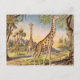 Cute vintage artwork showing a giraffe stretching up to eat some leaves off a tree