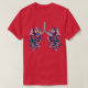 I give wanted to give this a 4 instead of a 5 because these Basic DARK T0shirts run unexpectedly SLIM or Narrow. Which is great if you do not have a potbelly, but I have a paunch. It isn't the shirt's fault that I've got a beer belly. The design and shirt itself is a quality cotton shirt. The color is more of a deep purple, but still a very pretty color. The Basic DARK T-shirts run a bit SLIMMER than the Basic Ts. The neck is a fraction narrower (or seems to be narrower) also. I'm a paunchy middle-aged woman and my neck is 12 inches (31cm) thick and the neckline fell about the same as in the photo of the man, and I had the desire to tug it a bit. So if you're a thick necked man or like loose shirts, be aware these are slimmer shirts. Once I get rid of my lockdown paunch it'll look great. The shirt washed well in cold water with no apparent bleeding. We don't have a dryer, so it hung dry. Did not shrink. Love the colors and the design. The design looks smaller on my shirt than it does on the model on-line. But still, it looks good on the shirt. The printing looks as it does on the model, just the size seems fractionally smaller. Washed garment in cold water, hung dry and design appeared unaffected.