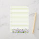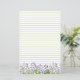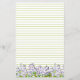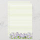 A monogram floral green lined stationery decorated with a row of purple lupine flowers painted with watercolor. On the back is the monogram which can be edited with colour and font style. Great for letter writing, journalling, and more.