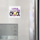 This cute, humorous magnet lets my family know that I realize I'm not the only one effected by my Lupus.(I had 'and Her Family' added to bottom of magnet) Everything about this magnet is great quality. Brilliant colors. Sharp images. Nice smooth finish. Sturdy magnet. I will be a repeat customer for sure. The printing is sharp with great color.