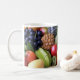 Photograph of a variety of delicious and colourful fruits printed on both sides of mug.