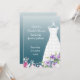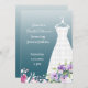 Elegant bridal shower invitation featuring a lovely white dress on a hanger with a lush floral border in the foreground and a teal blue gradient background. Text is all formatted on both sides and ready for you to customise with your own text details. Just edit all in the easy Zazzle text editor.