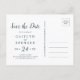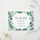 This lush greenery and eucalyptus save the date postcard is perfect for an elegant backyard wedding. The modern botanical design features gorgeous watercolor blue eucalyptus and green leaves.