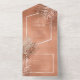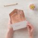 A trendy colour palette in shades of terra cotta, copper and rust; sparkling geometric frames and elegant design layouts, provide the basis for this exciting wedding suite. Whether you're planning a destination wedding or staying close to home, this delicate palm leaf design set makes an eye-catching choice. The wedding 'all-in-one', combined invitation and RSVP card shown here also features a tiny palm leaf accent on the back flap. A template is provided to add all your event details. Search ID956 to see other pieces and colour choices for this set.
