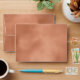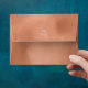 A trendy colour palette in shades of terra cotta, copper and rust; sparkling geometric frames and elegant design layouts, provide the basis for this exciting wedding suite. Whether you're planning a destination wedding or staying close to home, this delicate palm leaf design set makes an eye-catching choice. A palm leaf interior stands out against the terra cotta watercolor exterior of this elegant envelope. Easily add your initials and address using the provided template. Search ID956 to see other pieces and colour choices for this set.
