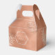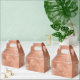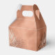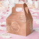 A trendy colour palette in shades of terra cotta, copper and rust; sparkling geometric frames and elegant design layouts, provide the basis for this exciting wedding suite. Whether you're planning a destination wedding or staying close to home, this delicate palm leaf design set makes an eye-catching choice. The coordinating favour box shown here provides a template to easily add a 'thank you' message, your names and wedding date. Search ID956 to see other pieces and colour choices for this set.