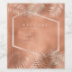 A trendy colour palette in shades of terra cotta, copper and rust; sparkling geometric frames and elegant design layouts, provide the basis for this exciting wedding suite. Whether you're planning a destination wedding or staying close to home, this delicate palm leaf design set makes an eye-catching choice. The coordinating wine label shown here provides a template to easily add a 'welcome' message, your names and wedding date. Search ID956 to see other pieces and colour choices for this set.
