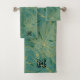 Lush palm leaves pattern in green and gold bath towel set
