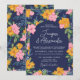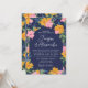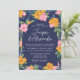 Lush Pink Yellow Flowers Dark Blue Wedding Invitation