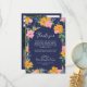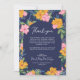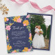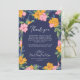Lush Pink Yellow Flowers Dark Blue Wedding Photo Thank You Card