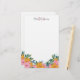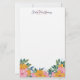 Beautiful floral stationery with a lush arrangement of modern flowers at the bottom, in pink and yellow with greenery. Personalize the stationery with your name and initials at the top. Your friends will love receiving handwritten letters from you on this stationery!