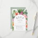 A beautifully lush tropical wedding response card design with colourful watercolor floral elements that include hibiscus blooms, ginger flowers and a variety of tropical foliage. The looks is vibrant and alive and sets the tone for your celebration in aloha style. A trendy arched frame inset surrounding your text adds a contemporary finishing touch.