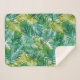 Lush Tropical Island Green Palm Leaf Watercolor Sherpa Blanket