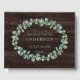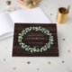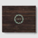 Modern design featuring watercolour eucalyptus branches wreath, on wood barn background; on the back initials and greenery divider round eucalyptus frame. Use Personalise to add your info. For matching items, please, visit my Eucalyptus Greenery Collection.