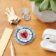 The Luther Rose's symbolism dates back to the 1520s. Luther explained that the red heart with the black cross represents the righteous living by faith in Christ the Crucified. The heart rests on a white rose, symbolising joy, comfort, and peace found through faith. The choice of white reflects the colour of heavenly spirits and angels. The white rose is set against a blue field, representing heaven, to signify that earthly joy and faith are just the beginning of eternal heavenly joy. Surrounding the blue field is a gold ring, symbolising the endless and precious happiness of heaven.