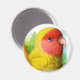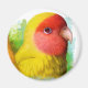 A photo realistic painting of lutino agapornis roseicollis. If you are a true fan of lovebirds, this is a magnet that you must have. Show the world what you love, what great birds they are, by using it.