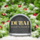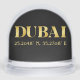 Domed snow globe features Dubai, UAE latitude and longitude map coordinates in gold fonts on black background. A perfect keepsake!