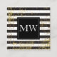 Lux Gold Grunge Monogram Black White Stripes Square Business Card