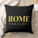 Lux throw pillow design features Rome, Italy latitude and longitude map coordinates in gold fonts on black background.