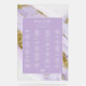 This custom design featuring an alcohol ink abstract in shades from soft lavender to lilac purple with glittering gold accents, is perfect for a romantic and elegant wedding theme. The acrylic wedding seating chart shown here features an semi-transparent abstract background and provides a template to easily add your guest list arranged alphabetically. Search ID990 to see other pieces in this coordinated wedding set.